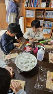 2年生~6年生は経験があるのでスムーズに取り掛かり、1年生も初めてではありましたが粘土みたいにこねこねと楽しみながら取り組みました(^ー^)