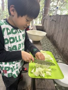 野菜やお肉を切って下ごしらえをして火起こしまで自分たちで頑張りました!
