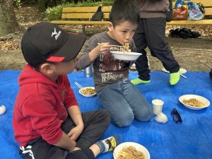ある程度食べてお腹いっぱいになったら広場で遊び、お腹に余裕が出来たらまた食べて 普段じゃ考えられないくらい食べている子もいました。